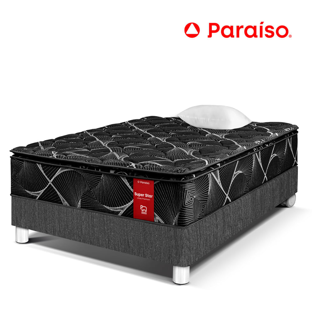 | Beneficios | Super Star Negro está cubierto con un diseño elegante en tela tejido de punto que brinda una sensación de suavidad. Además, cuenta con espuma Zebra Descanso3 (espuma perfilada), espuma prensada y un panel de resortes Cosisoft que proporcionan un soporte equilibrado en toda la superficie. |