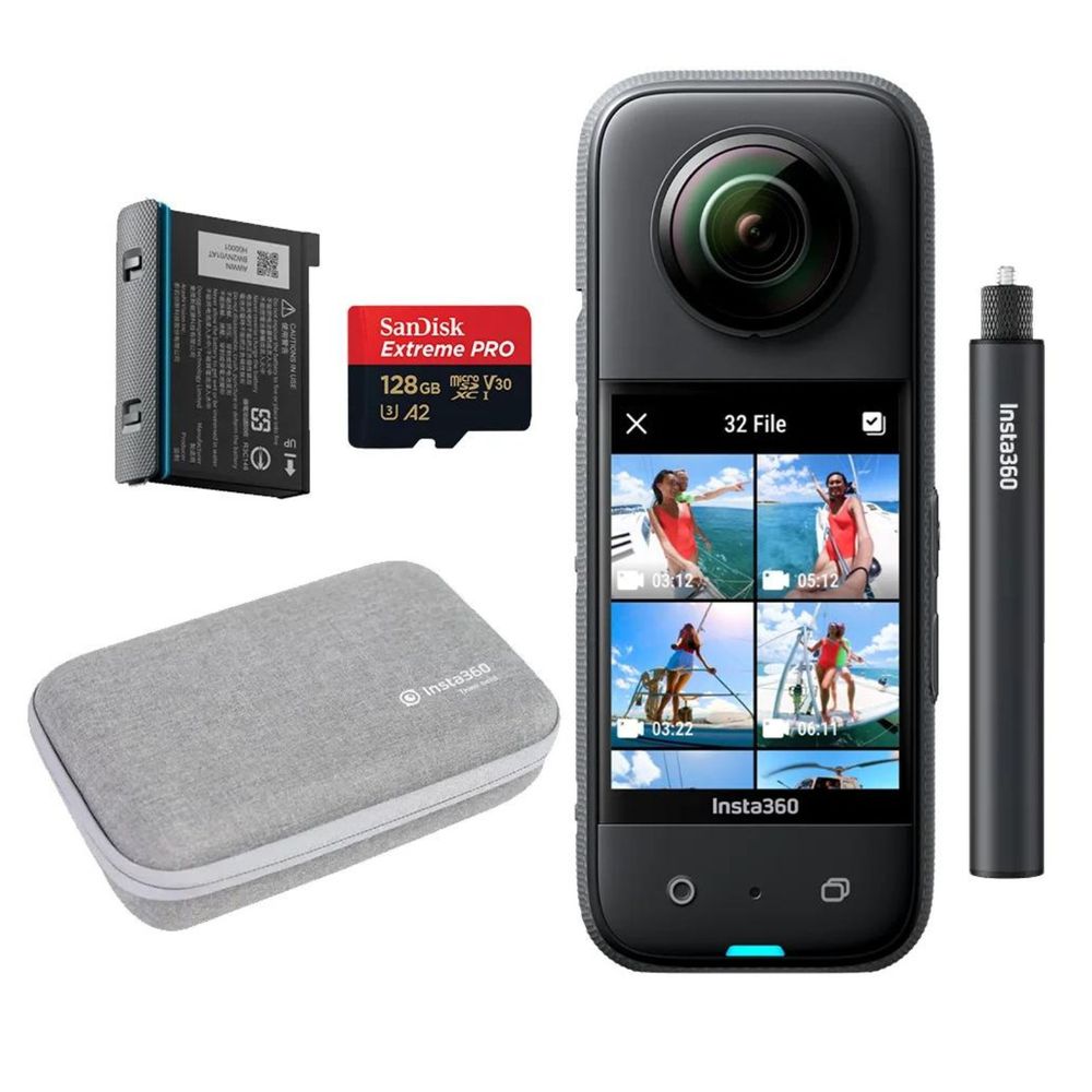 Cámara Insta360 X3 + Selfie Stick 70 CM + Memoria 128GB + Bateria 1800Ah