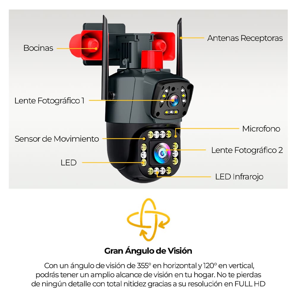 Camara Ip Wifi Ptz Doble Lente 360 Exterior Sirenas Alarma