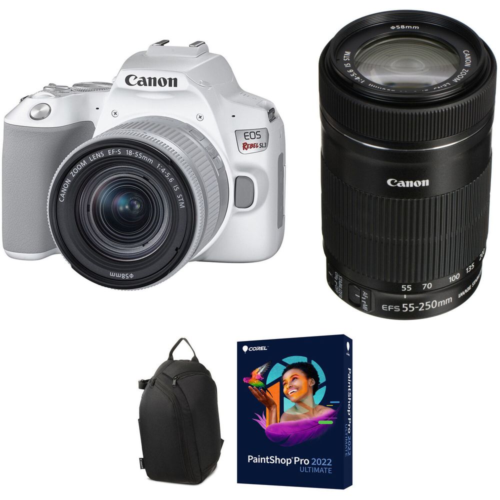 Cámara Réflex Digital Canon Eos Rebel Sl3 con Kits de Lentes 18 55Mm y 55 250Mm Blanco - 1475085-REG