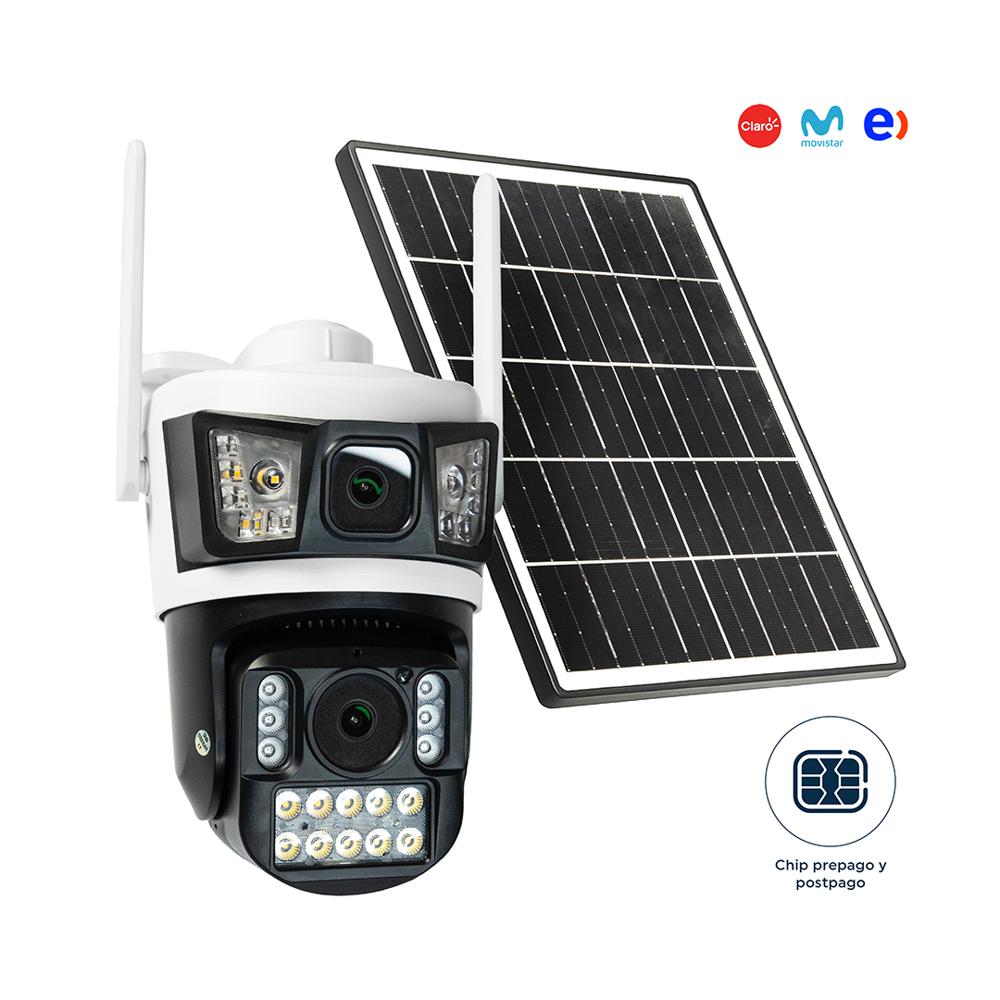 | Características | Doble lente,Visión nocturna a color, doble lente panorámica, conexión 4G SIM, sin necesidad de WiFi, |