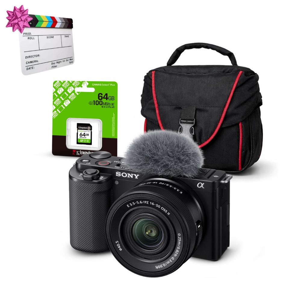 Cámara Sony ZV-E10 Mirrorless y Lente 16-50mm f35-56 II y Kit Básico de Accesorios