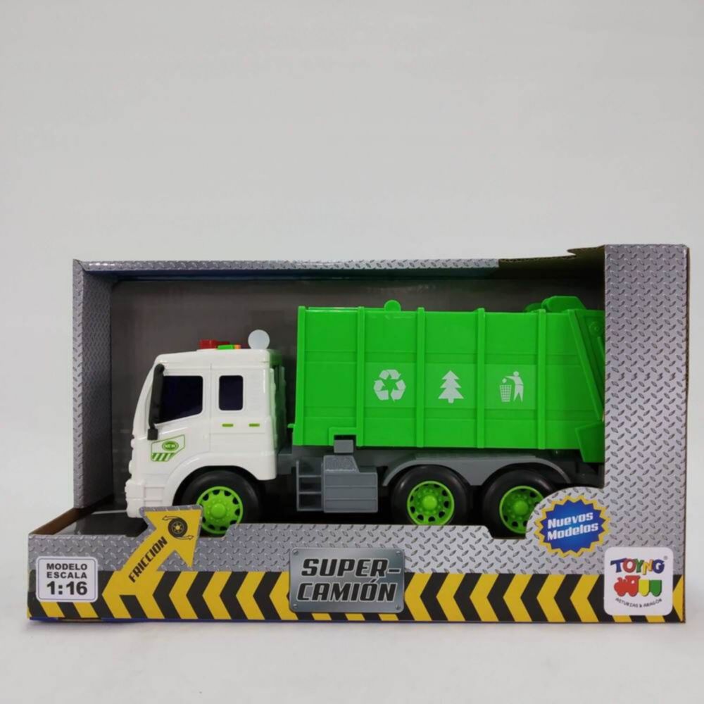 Camión Toyng A Escala 1:16 Fricción Con Luces Y Sonidos Recolector Basura