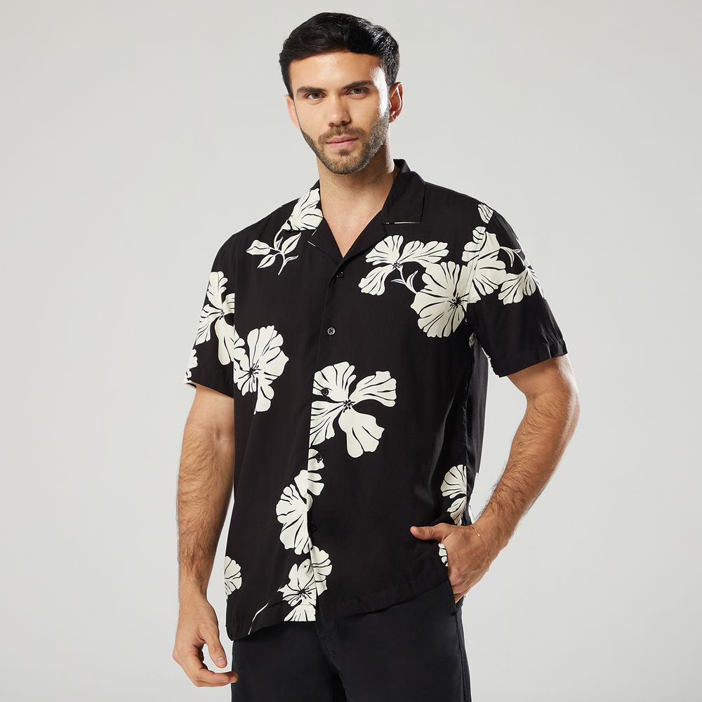 Camisa Malabar Manga Corta Hawai Print Hombre