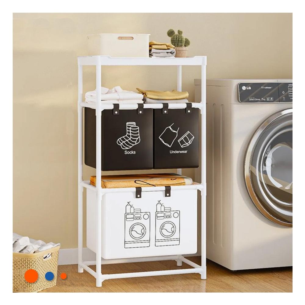 Carro Ropa Sucia 3 Niveles Estructura Practica con 3 Cestos Negro Blanco Y+Regalo Sticker