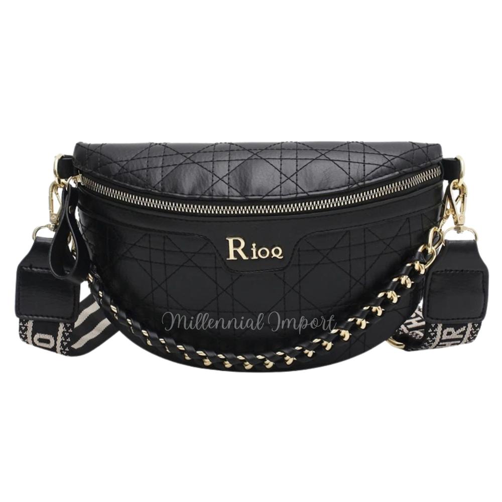 Cartera Canguro Negra de Mujer en Cuero PU Elegante