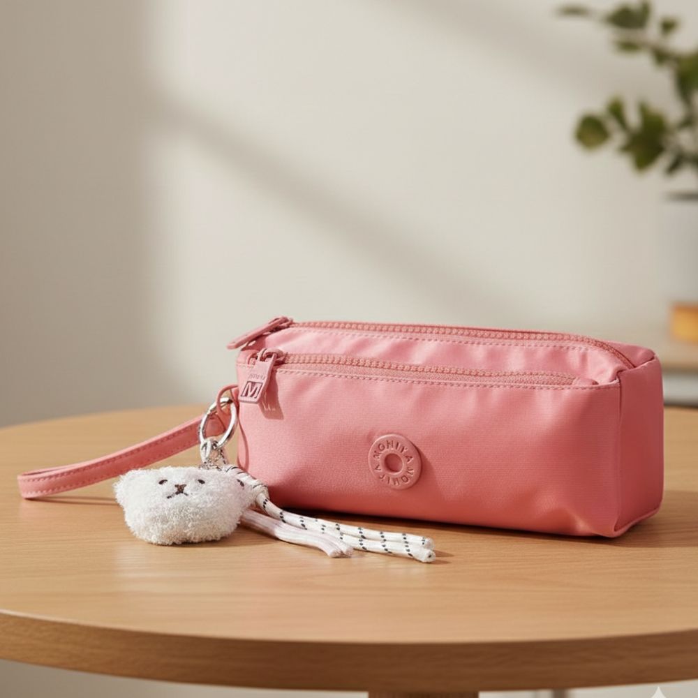 Cartuchera de 3 Compartimentos y Llavero de Mono Rojo Coral