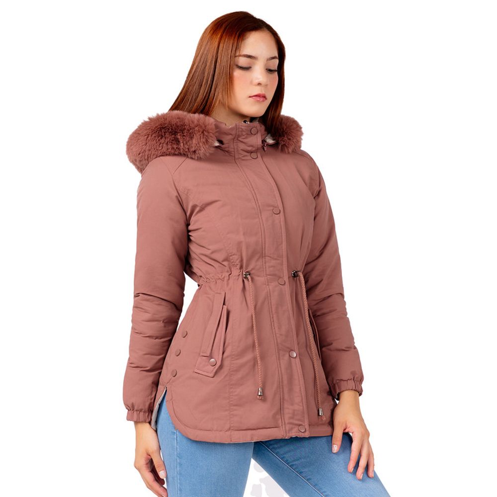 Casaca Abrigo Reversible Mujer by Indra Color Rosa con Beige