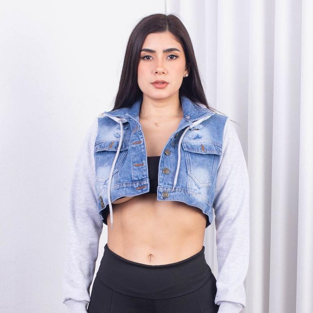Casaca Jean Crop con Capucha para Mujer.