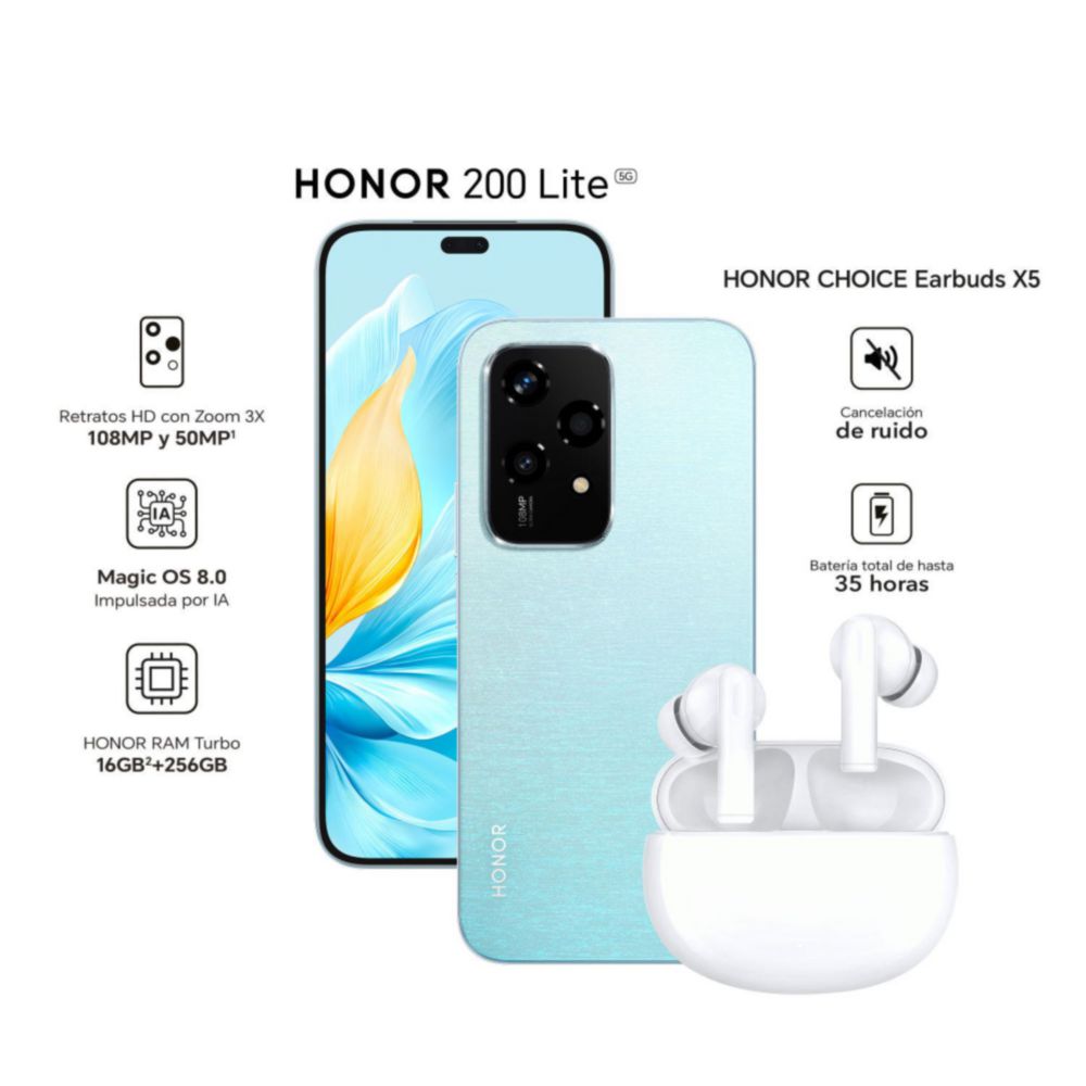 Celular Honor 200 Lite 8GB RAM 256GB 6.7" Starry Blue+Earbuds X5