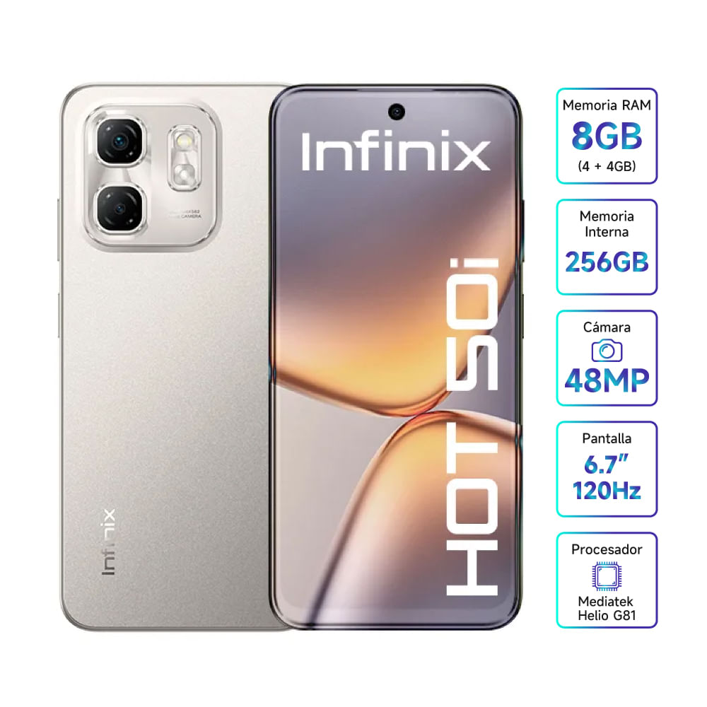 Celular Infinix Hot 50i 256GB 4GB Ram Gris Pantalla HD+ 120Hz 48MP