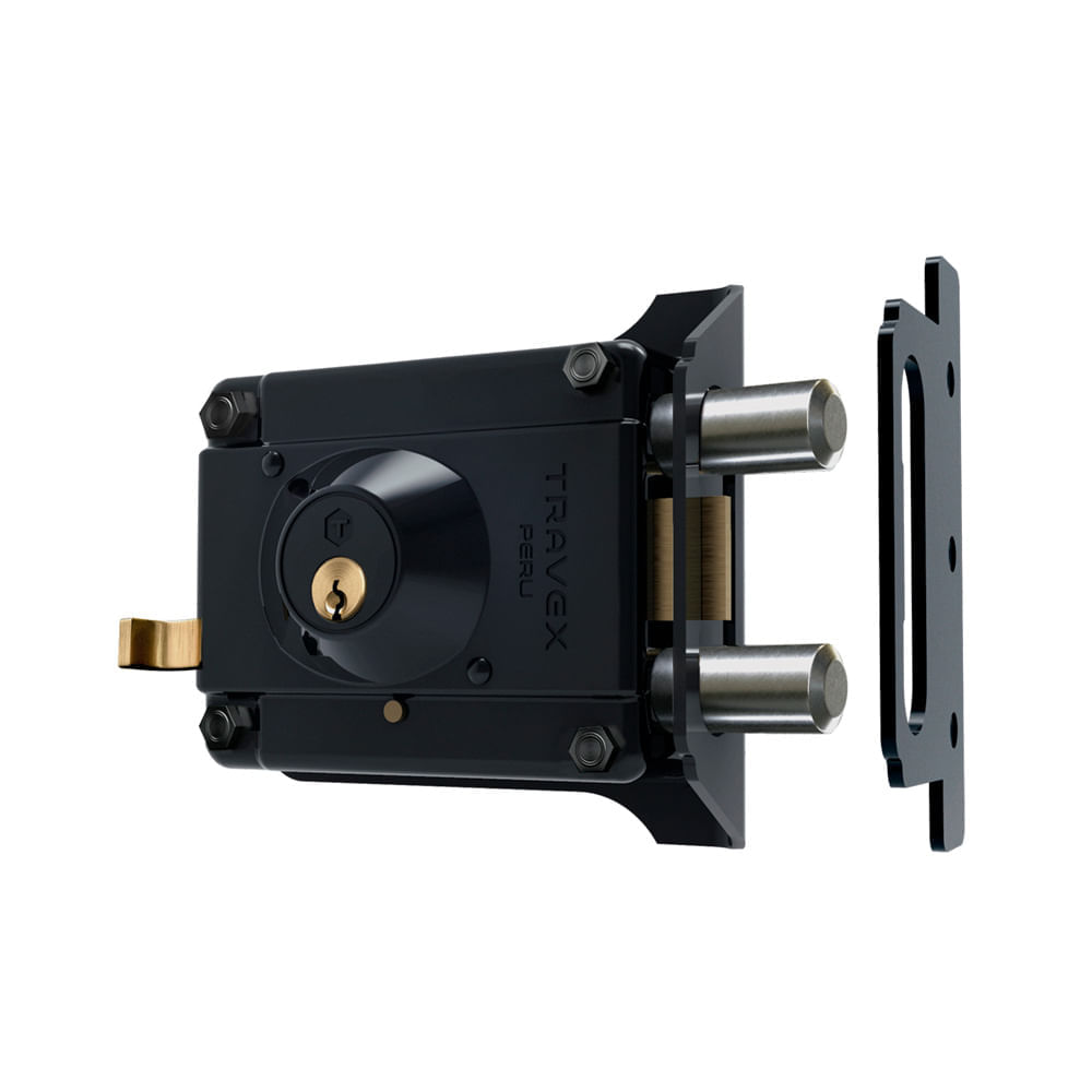 | Características | Cuerpo de acero LAF de una sola pieza de 2 mm de espesor 100% plano. Cuenta con 3 pivotes de acero cromado de 16 mm de espesor. Cuenta con seguro interno nocturno. Cuenta con 3 llaves de 7 pines de 900 mil combinaciones. Cuenta con un escudo protector con jalador. Plancha de 3 mm de espesor más angulo de sistema de engrampe. |