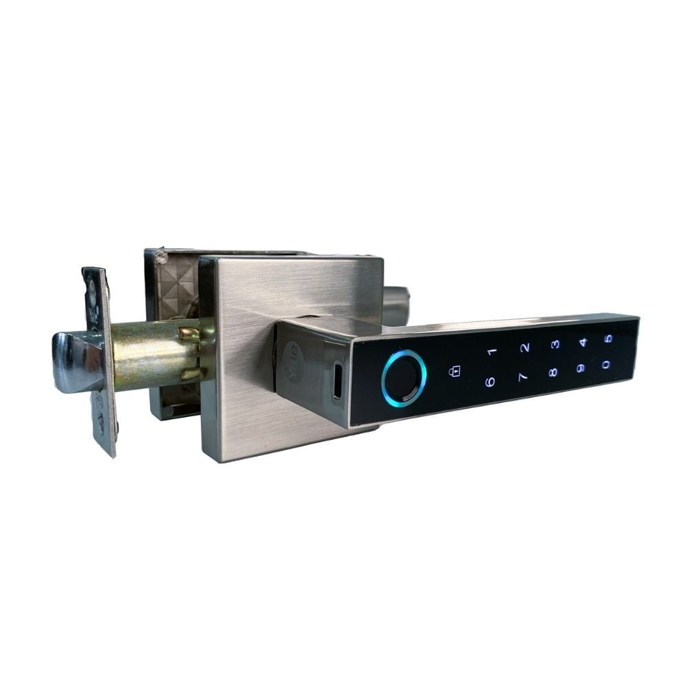 Cerrojo Digital Manija Biométrica con Teclado Acero Plata Yale