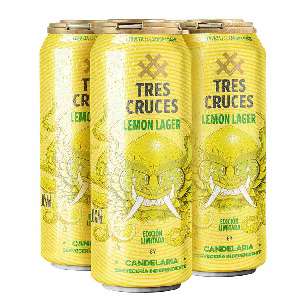 Cerveza TRES CRUCES Limón By Candelaria Lata 473ml Pack 4un