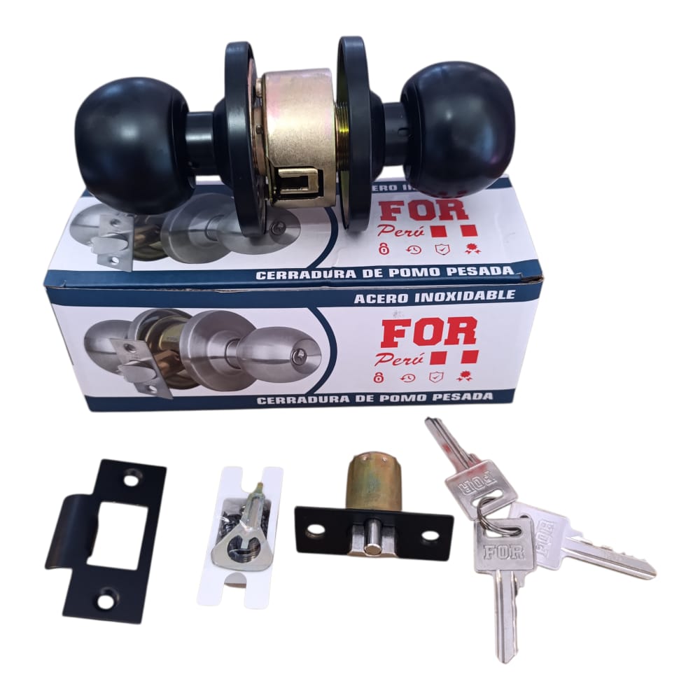 Chapa negro mate pomo redondo de bronce pesado con llaves de bronce