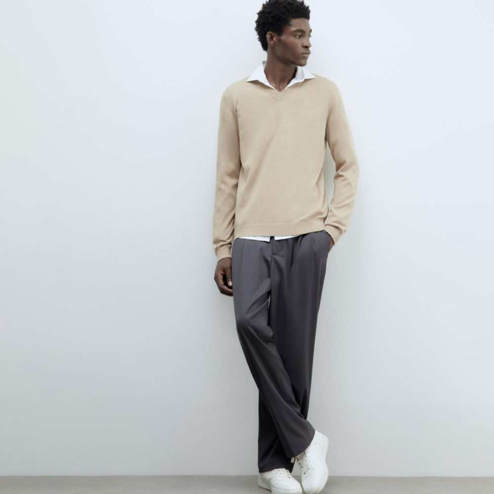 Chompa Cuello Pico Sfera Hombre Camel