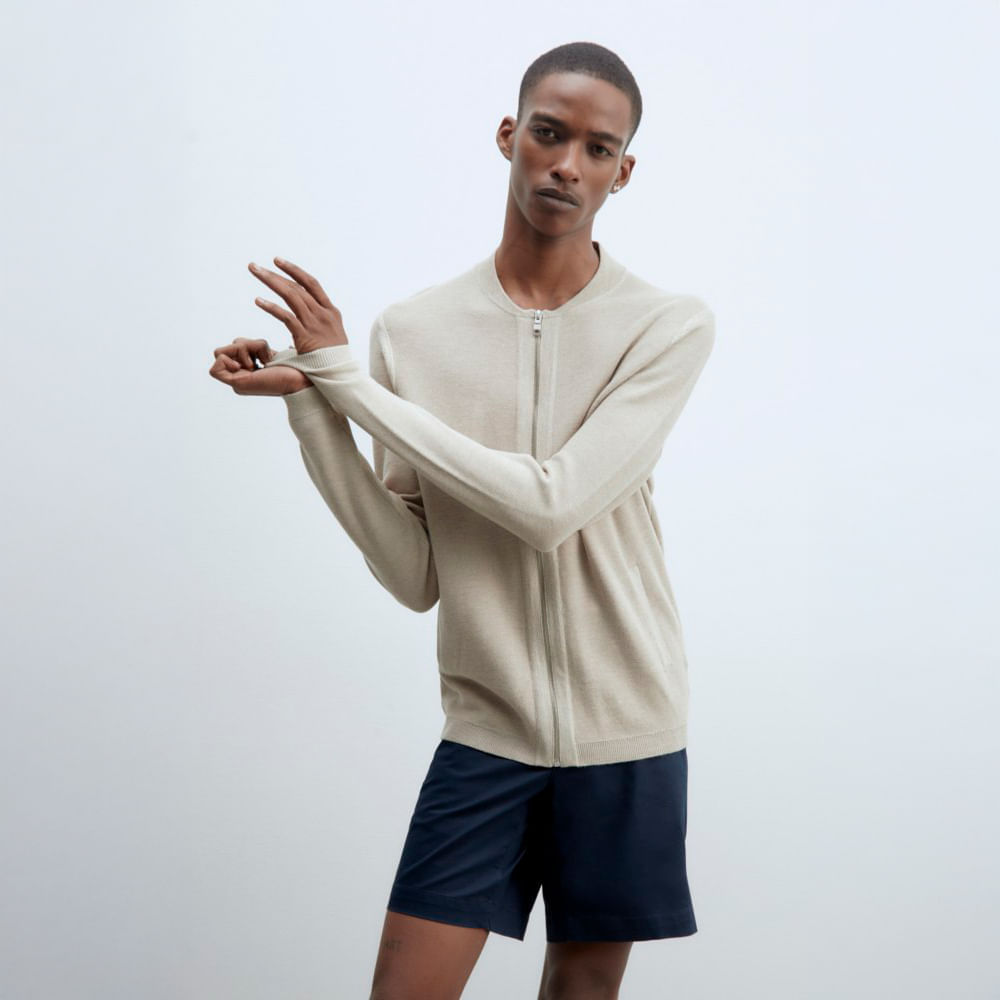 Chompa Hombre Sfera Cremallera Estructura Crema