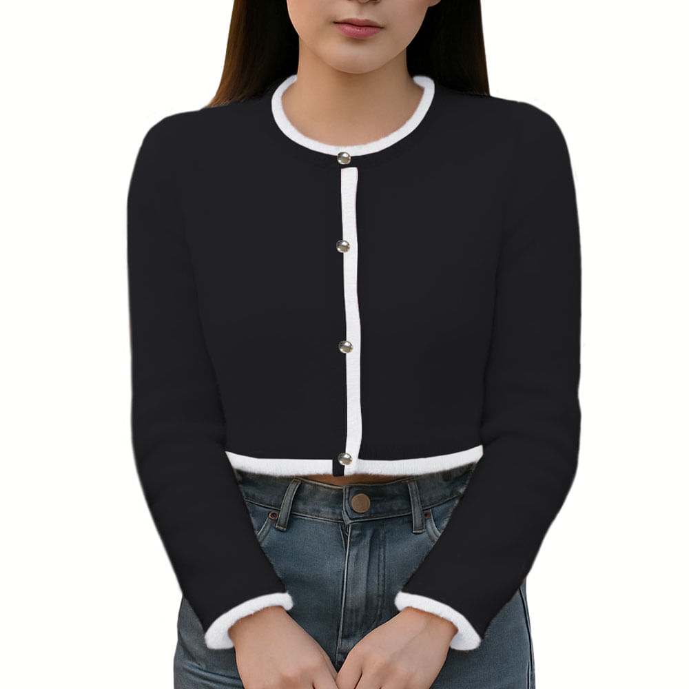 Chompa Mujer Abierta 463G-25 Peluche Botones Color Negro