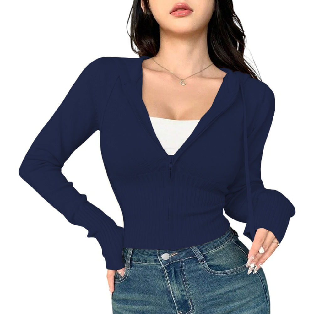 Chompa Mujer Cierre 463G-27 Hilo Tacto Algodon Cierre Jalapitas Y Capucha Color Azul