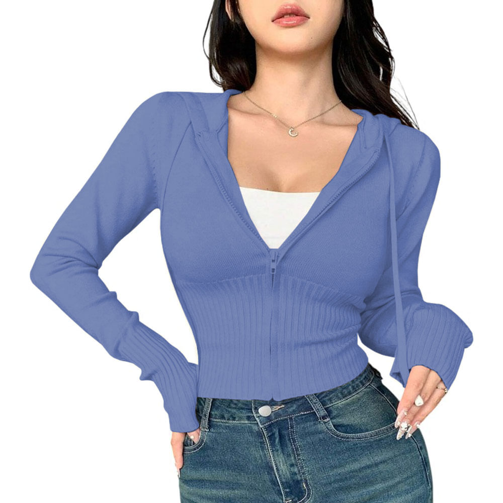 Chompa Mujer Cierre 463G-27 Hilo Tacto Algodon Cierre Jalapitas Y Capucha Color Celeste