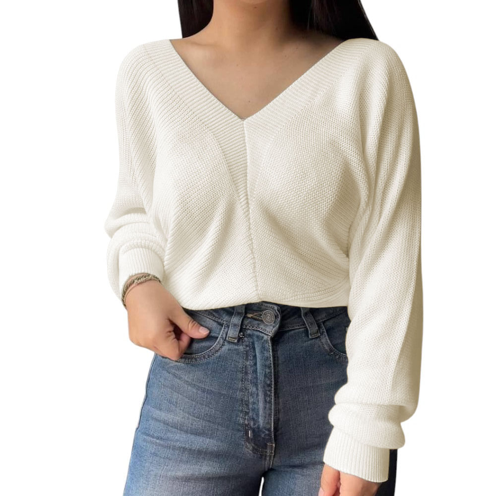 Chompa Mujer Hilo Espalda Descubierta 359G-25 Color Perla