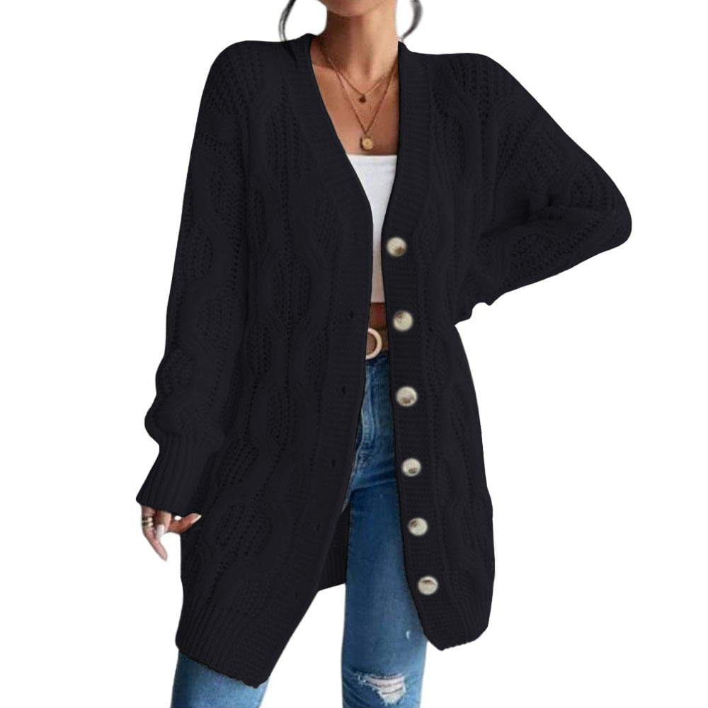 Chompa Mujer Hilo Invierno Botones 127G BRA-32 Color Negro