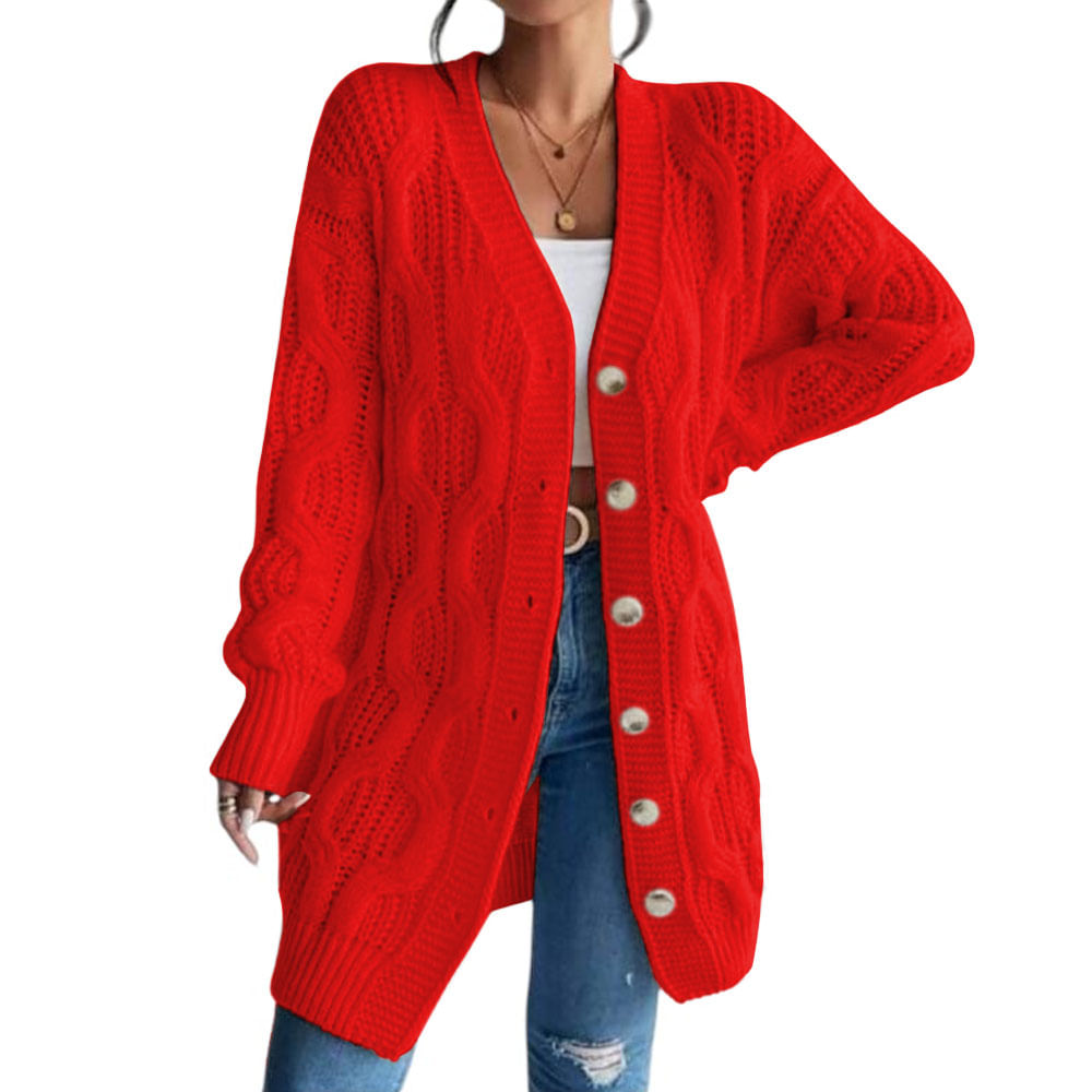 Chompa Mujer Hilo Invierno Botones 127G BRA-32 Color Rojo