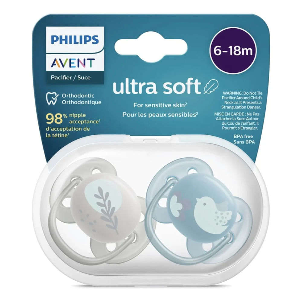 Chupón Avent 6-18 Meses Ultra Soft Pack 2 Unidades con Estuche Niño