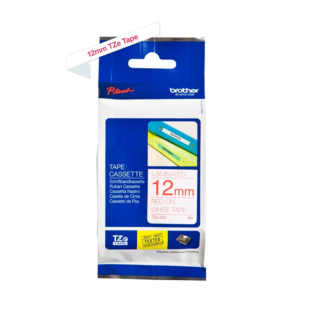 CINTA BROTHER TZE-232 1/2" (12MM ANCHO) ROJO SOBRE BLANCO COMPATIBLE PT-H110 PT-E110VP P/N: TZE-232