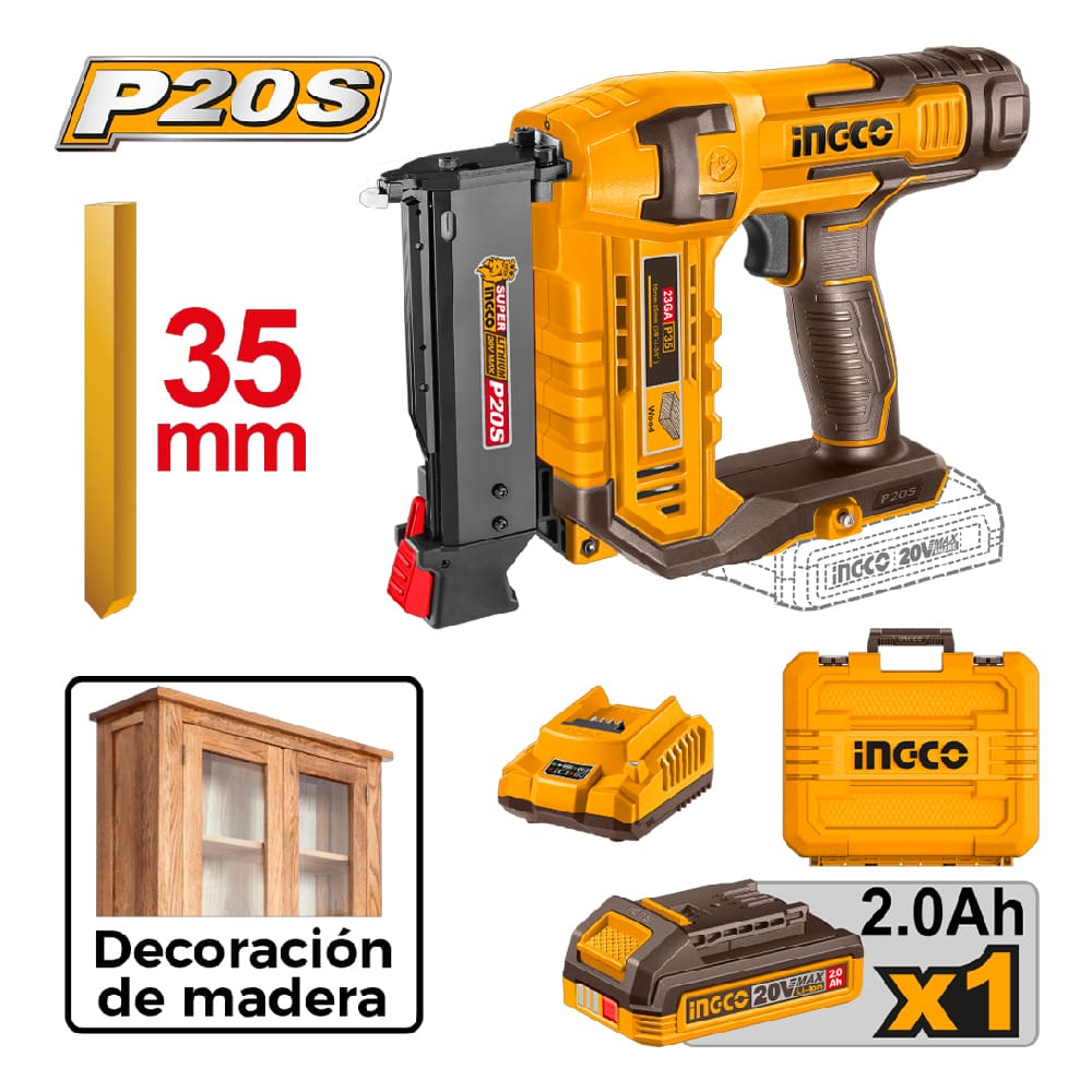 Clavadora Ingco 20V 35 MM con Batería con Cargador CBNLI3606