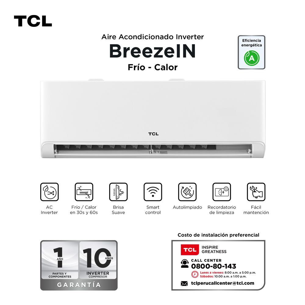 Climatizador Smart TCL Calor Frío 24000 BTU BreezeIN Split Inverter TAC-24CHSAI
