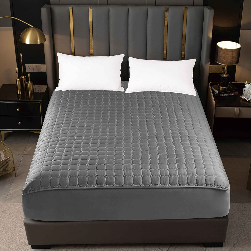 Cobertor Queen de Colchon Protector Impermeable Gris Oscuro