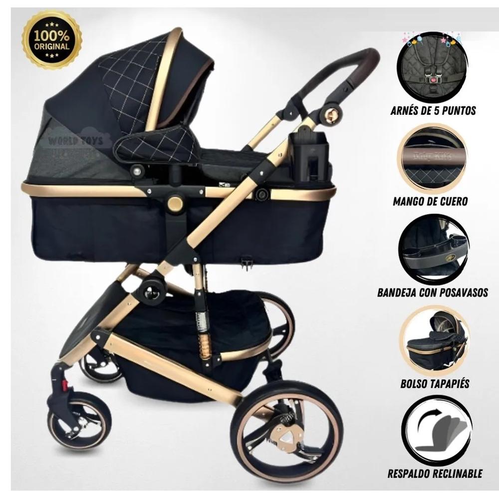 Coche Cuna de Lujo Nuevo Gold Negro - GOL-NEGRO