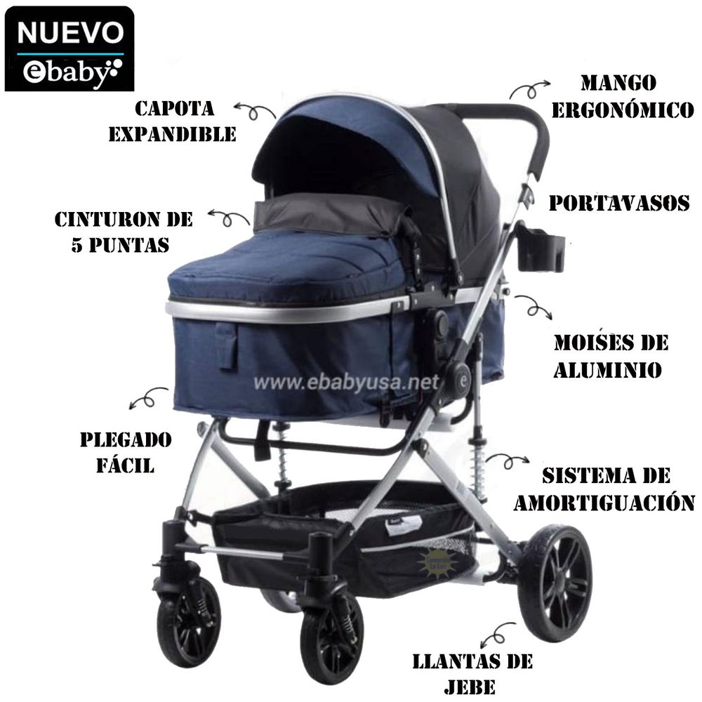 Coche Cuna Moisés de Lujo Bigi Azul