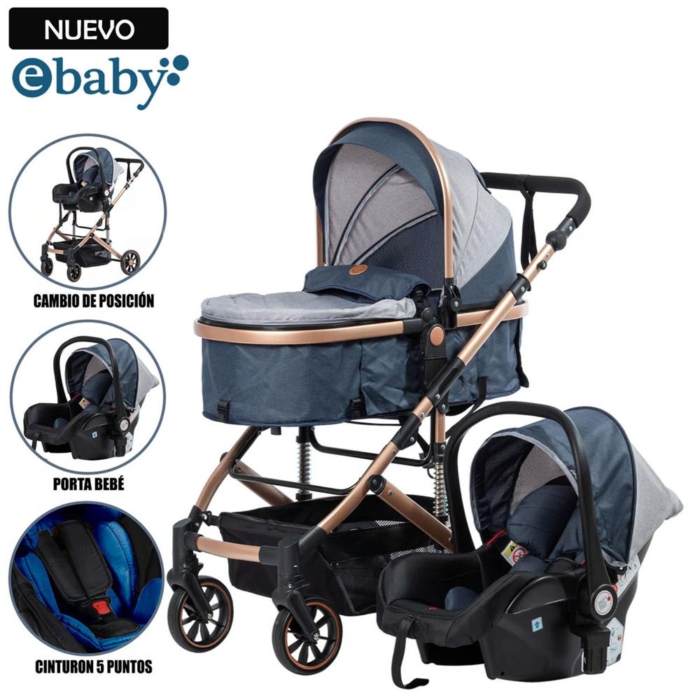 Coche Cuna Moisés de Lujo COMFORT Con Porta Bebé Azul