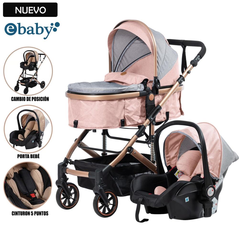 Coche Cuna Moisés de Lujo COMFORT Con Porta Bebé Rosado