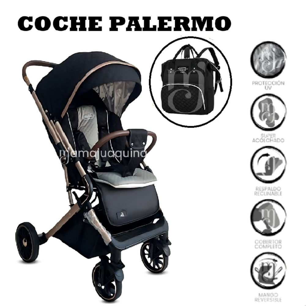 Coche Maleta Palermo con Mochila Pañalera -Negro