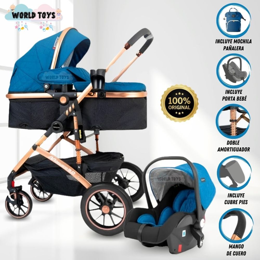 Coche Moisés 4 en 1 VERONA GOLD con Porta bebé Blue