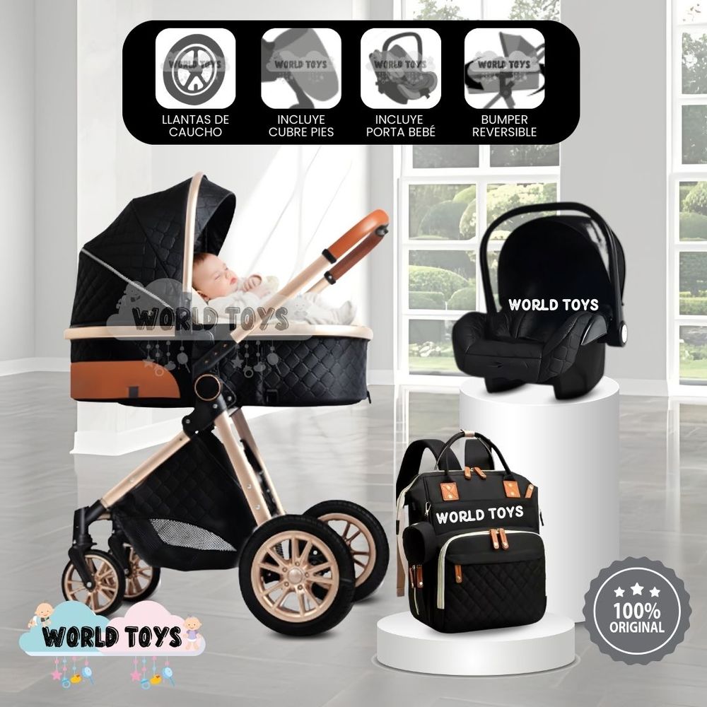 Coche Moisés de Lujo 4 en 1 MADRID Con Portabebé Black