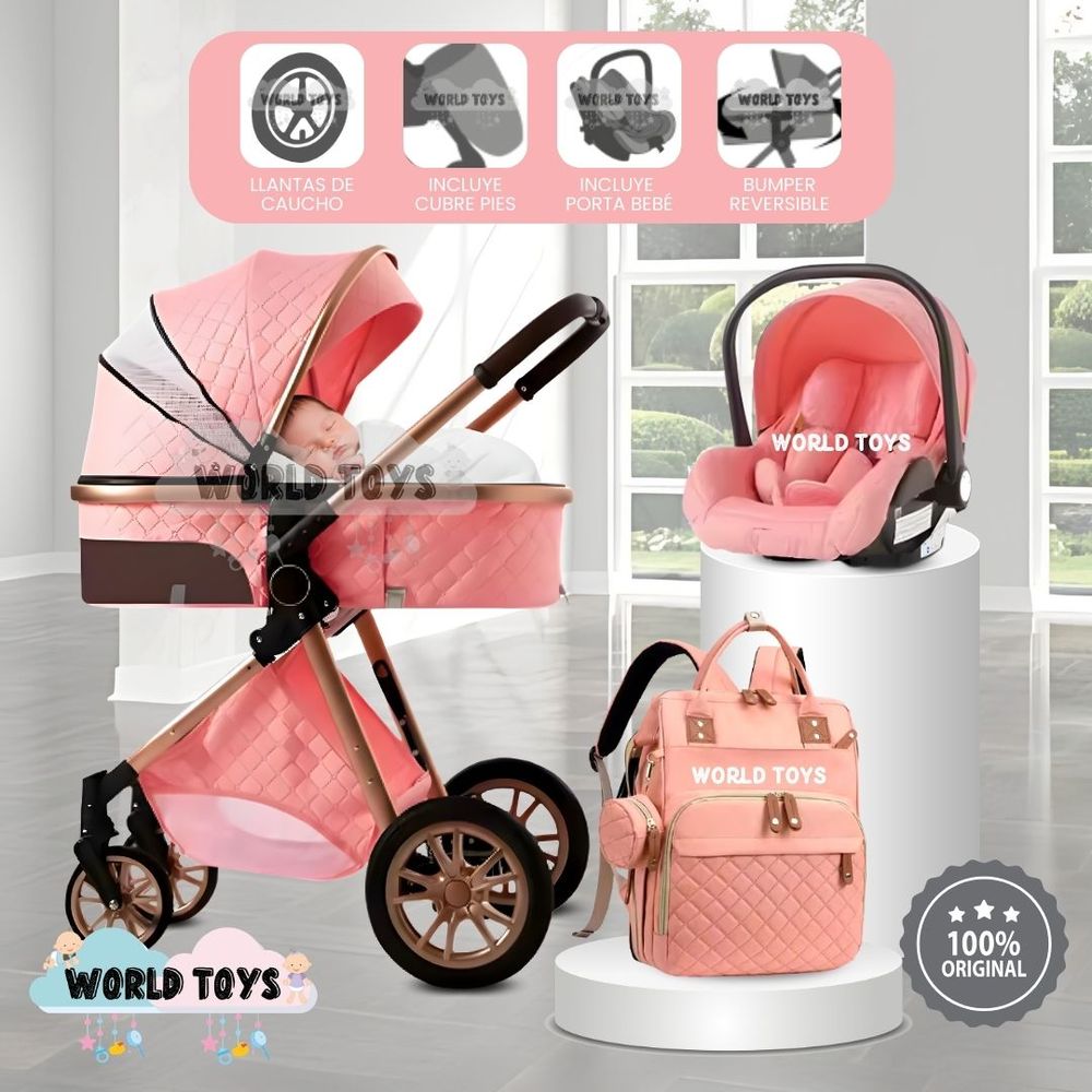 Coche Moisés de Lujo 4 en 1 MADRID Con Portabebé Pink