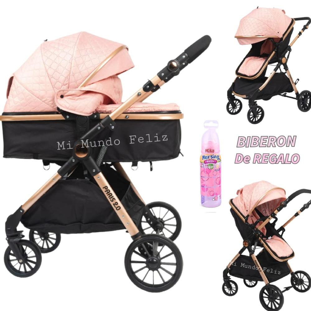 COCHE MOISES PARA BEBE CON AMORTIGUACION DORADO PARIS ROSA - PARIS200ROSA