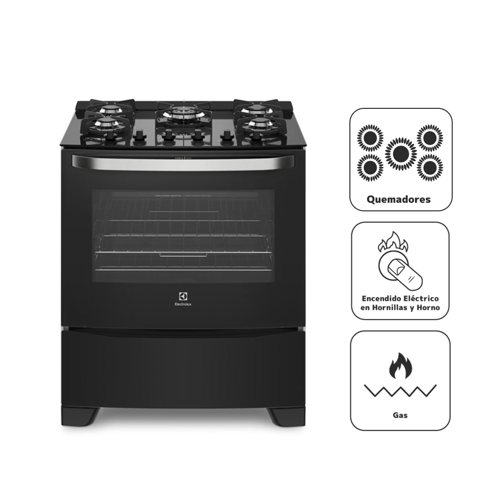 Cocina a Gas ELECTROLUX 5 Quemadores 76GS Negro