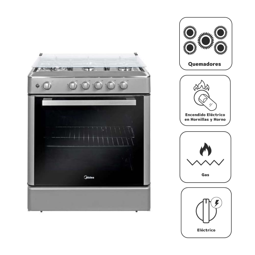 Cocina a Gas MIDEA 5 Quemadores MGS30FS2LBAMB-PE Silver