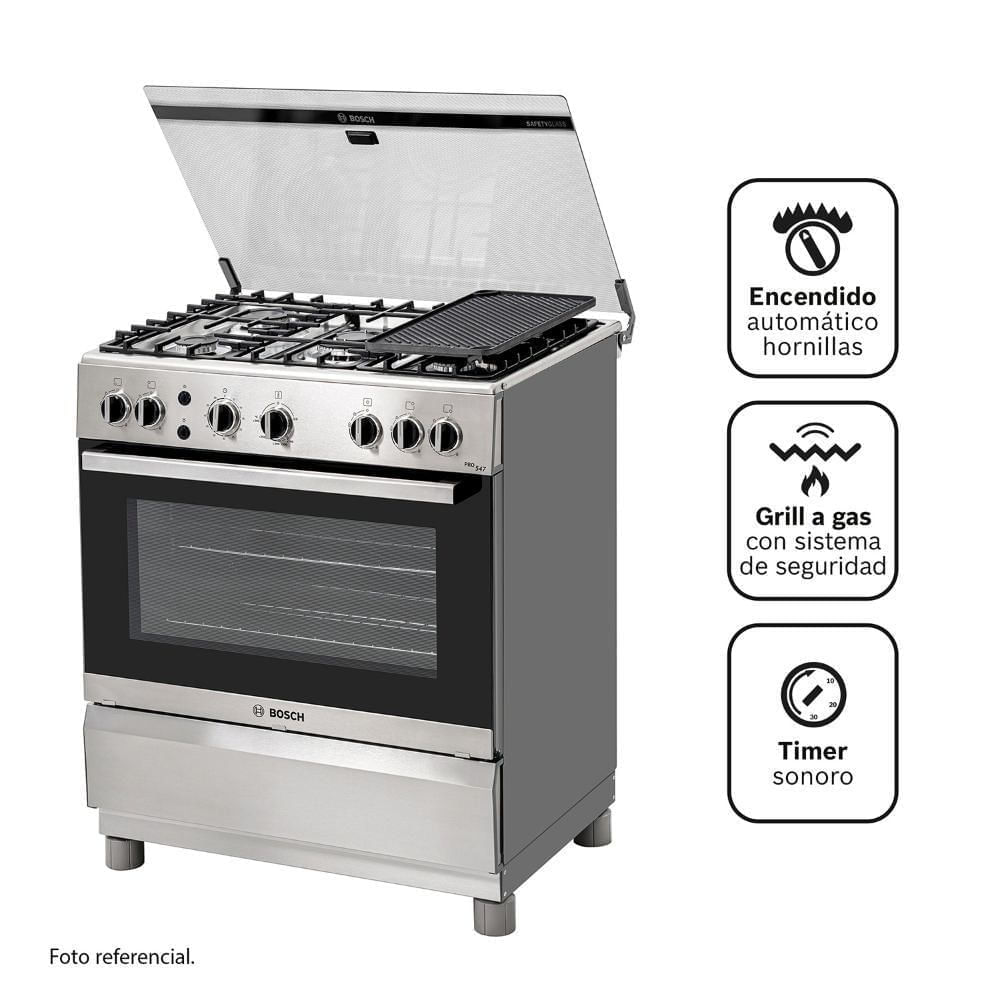 | Características | ENCENDIDO ELÉCTRICO EN EL HORNO Y AUTOMÁTICO EN LAS HORNILLAS, LUZ Y TIMER SONORO PARA EL HORNO, UNA PARRILLAS AJUSTABLE Y UNA AUTODESLIZANTE PARA EL HORNO, QUEMADOR WOK |