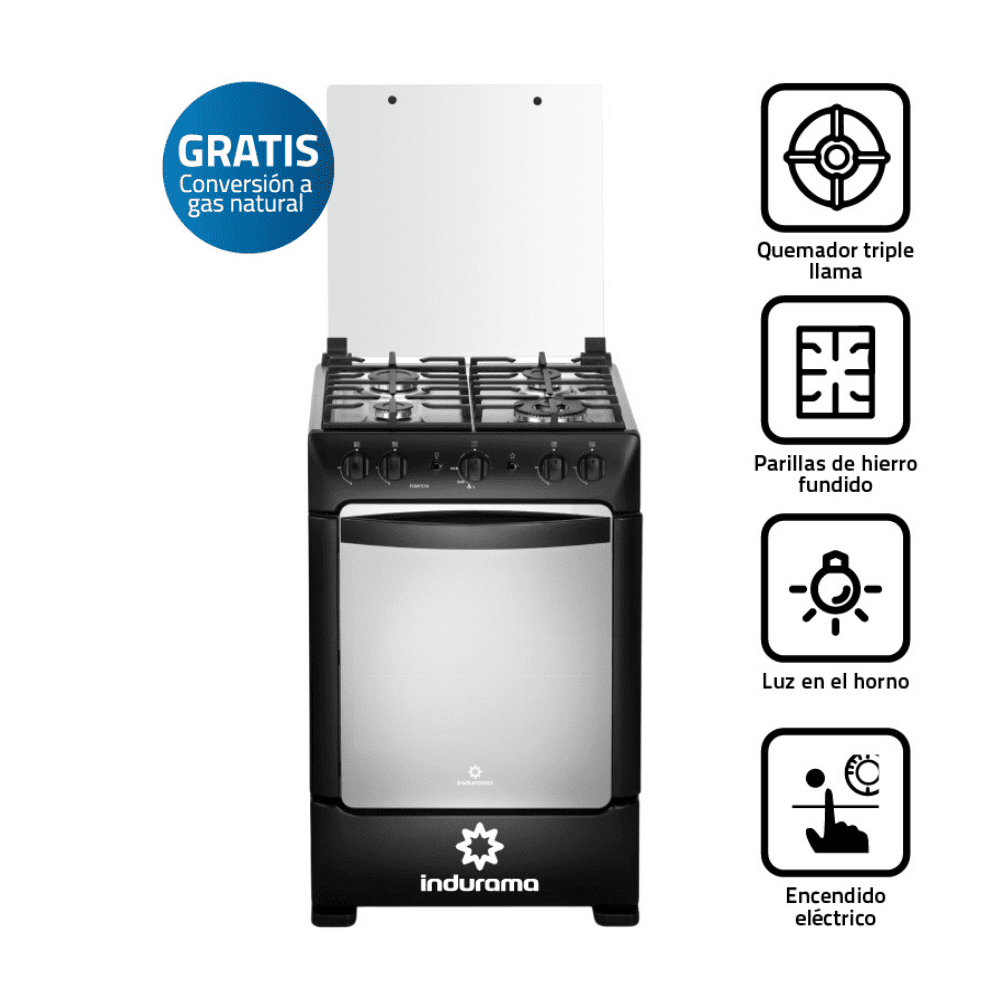 Cocina de Pie a Gas Indurama Pompeya Zafiro 4 Hornillas Negra