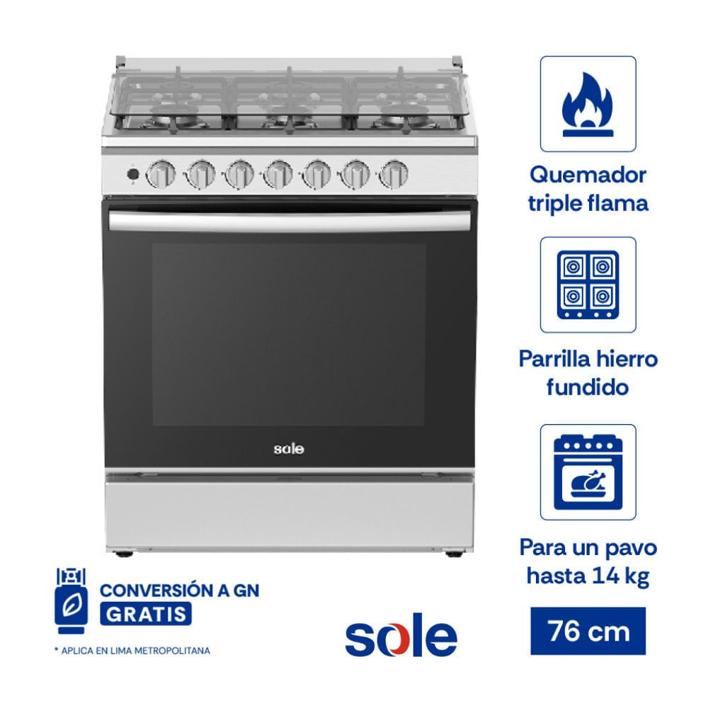 Cocina de Pie a Gas Sole Aruba 6 Hornillas Acero 76cm Gris con Horno