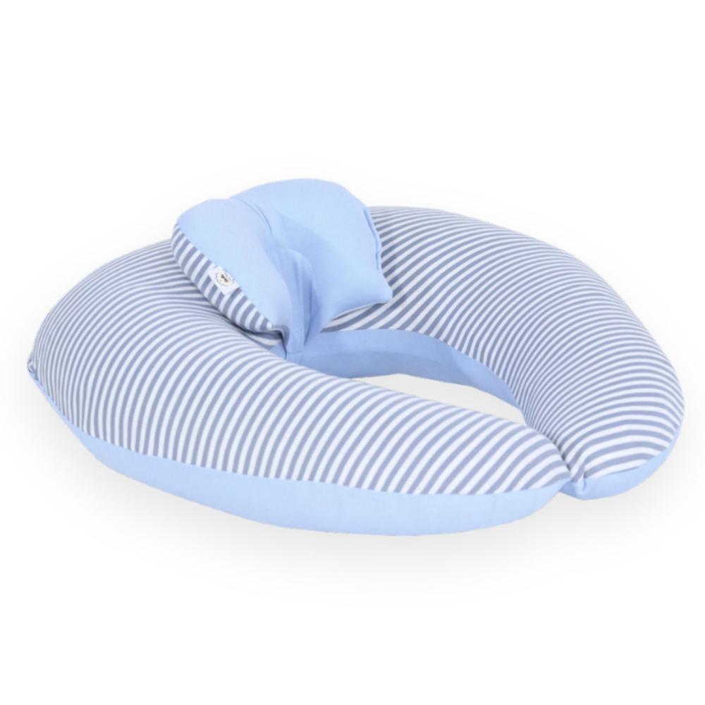 Cojin de Lactancia Acolchonaditos Celeste Rayas Plomas