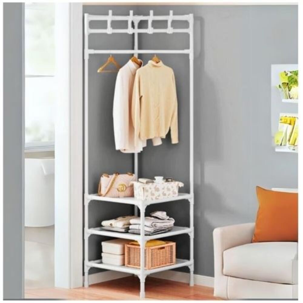 Colgador de Ropa Perchero de Pie Esquinero 3 Niveles Blanco