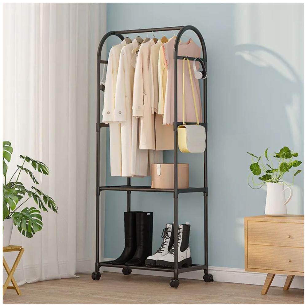 Colgador de Ropa Zapatera Elegante Con Ruedas 165x59x30cm Negro