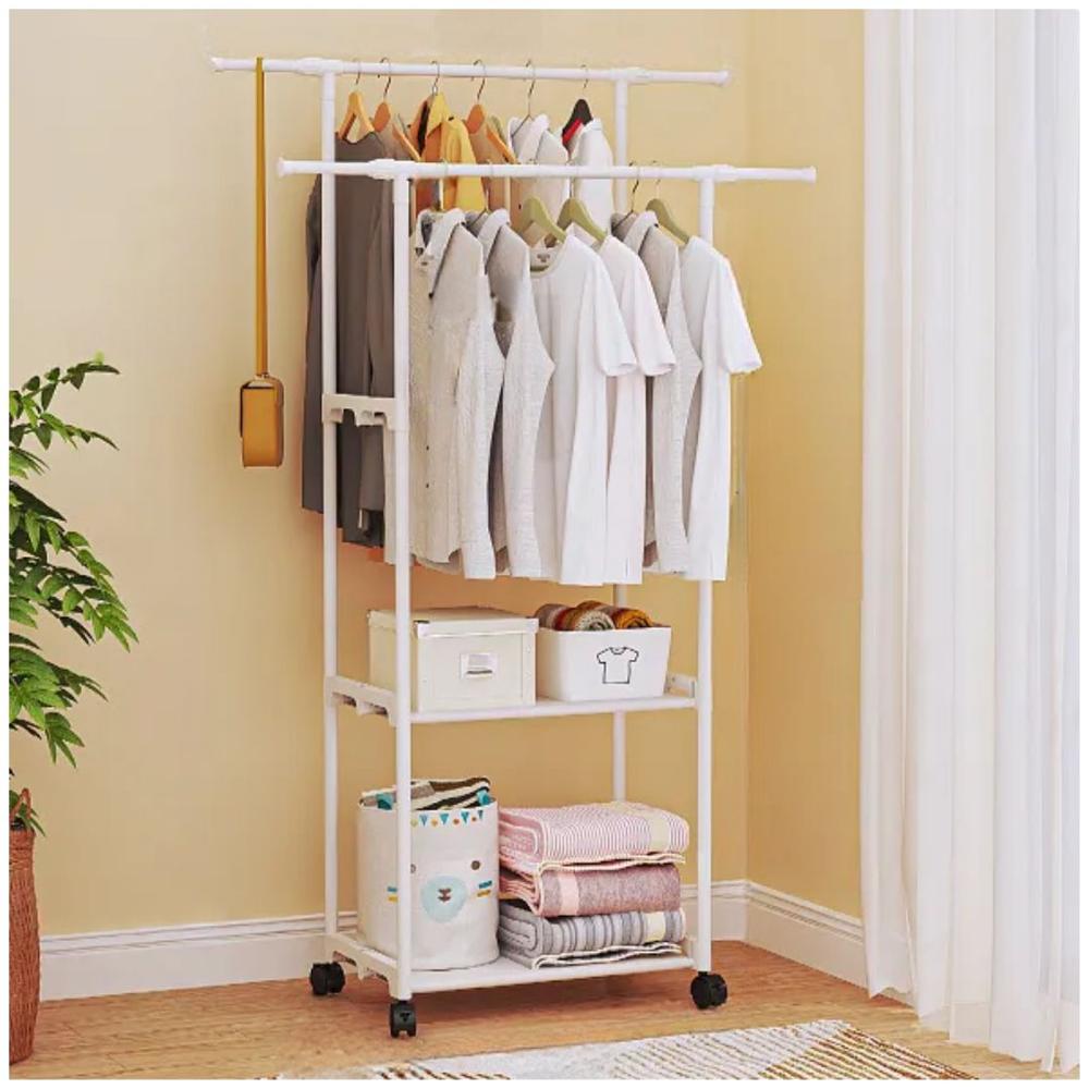 Colgador Perchero Organizador de Ropa Doble Barra con Ruedas 164x95x35cm Blanco